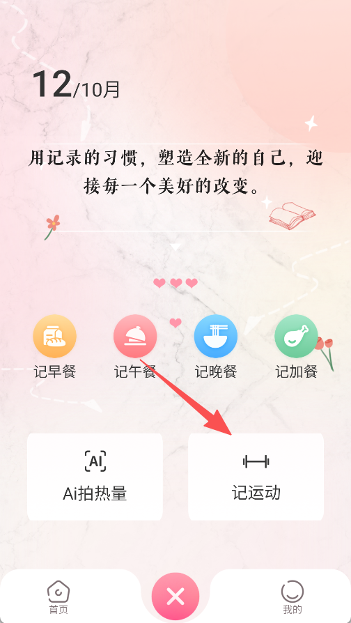 1、进入软件首页,点击记运动,进入运动项目选择页面。
