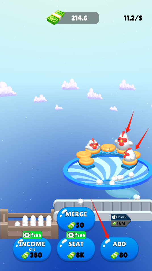 2、点击ADD为小鸡增加新成员,加速产蛋的效率,产出更多的资金。