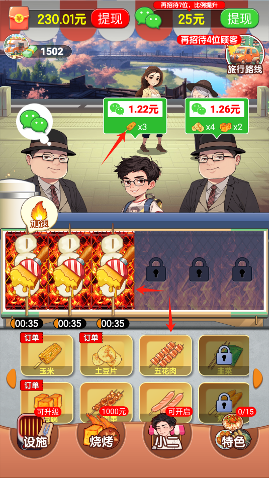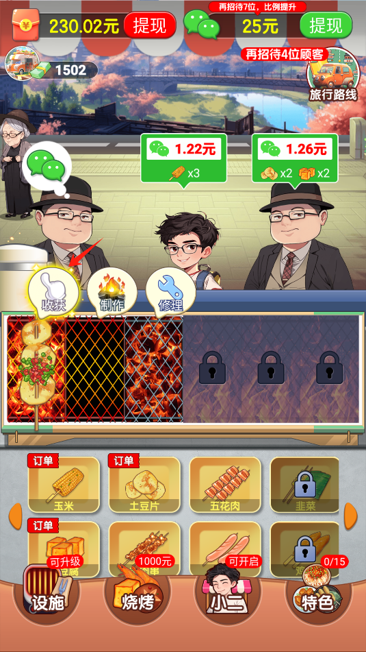 2、制作的订单一完成,可点击收获来提交订单获得奖励,奖励可解锁更多的食品种类。