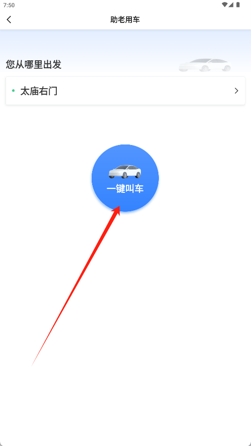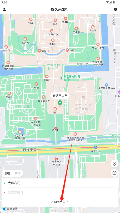 1、在首页点击“助老用车”功能入口,进入服务页面。