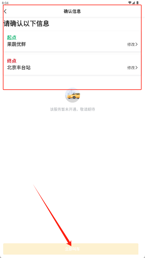 3、在地图界面确认上车位置信息并等待司机到达,底部显示“立即叫车”提示框。