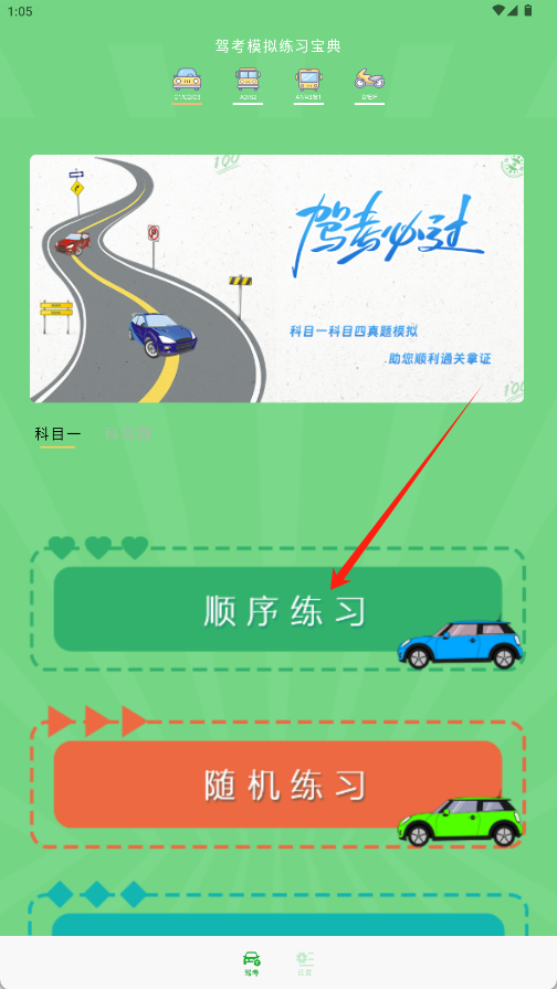 2、进入主界面后,在“科目一”板块找到“顺序练习”按钮并点击进入。