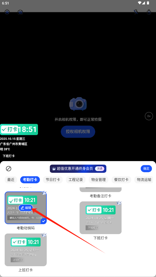 2、模板库提供多种预设水印样式,涵盖考勤、巡检、施工等不同工作场景的使用需求。