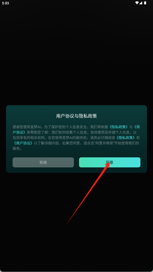 1、首次打开软件,在用户协议与隐私政策弹窗中“同意”授权。