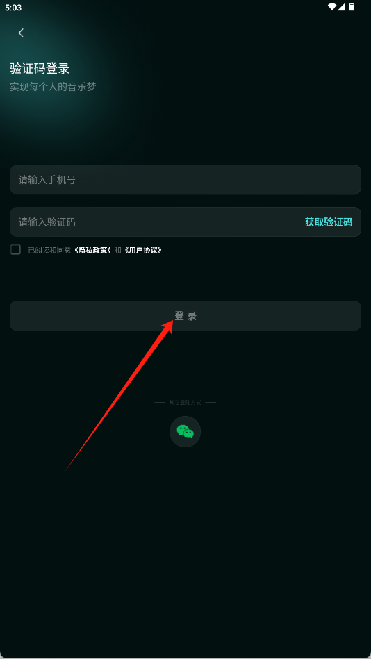 2、输入手机号并获取验证码,勾选同意协议后“登录”完成。