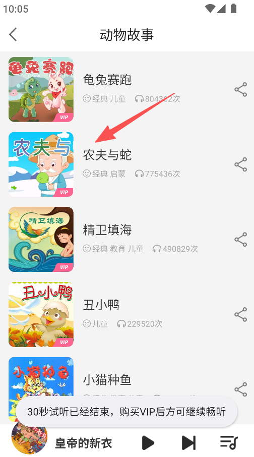 2、在类别页面中、选择具体故事(如农夫与蛇)、点击进入播放页。