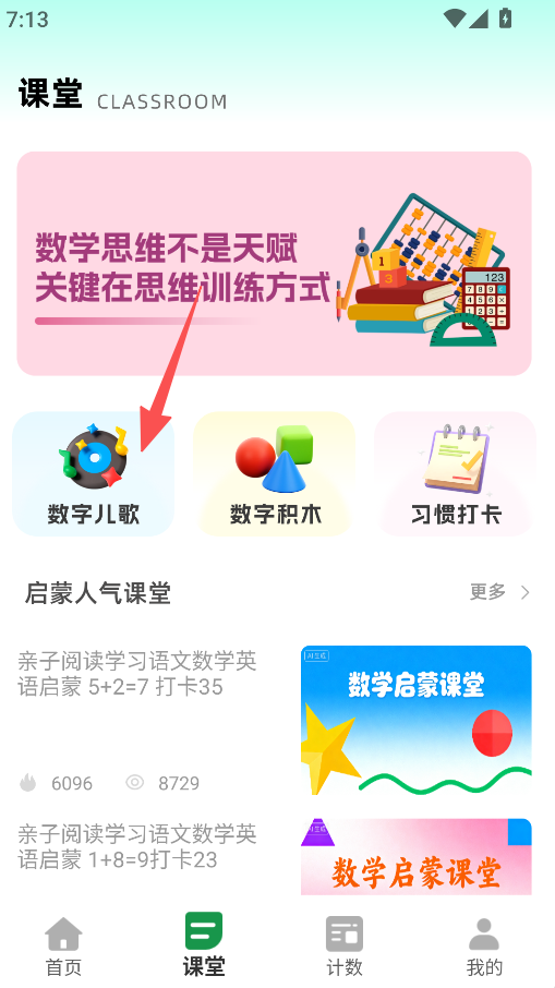 1、进入课堂、点击数字儿歌、进入课程列表页。