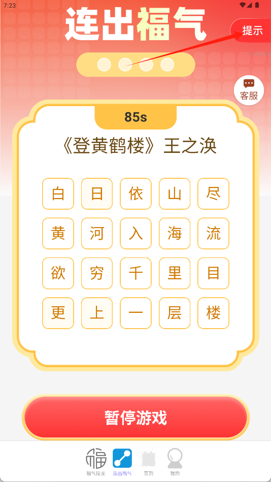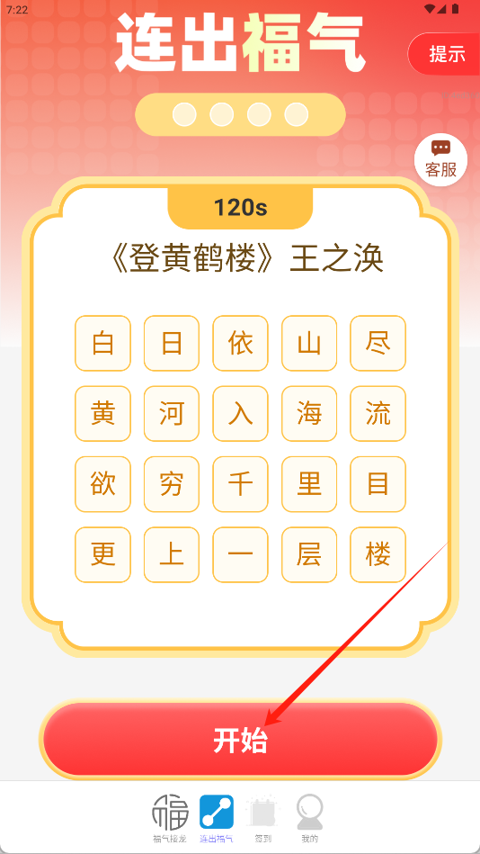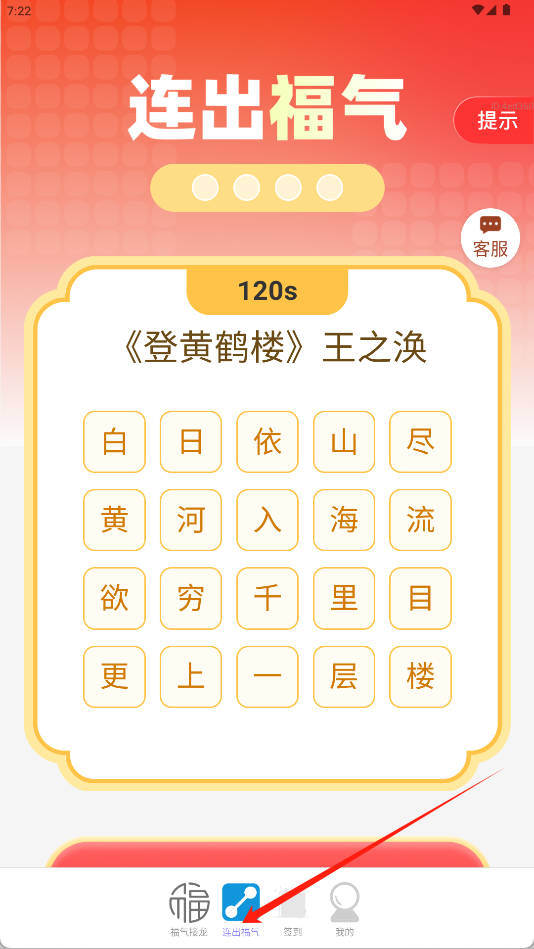 1、在福星到家首页底部导航栏点击“连出福气”图标进入游戏界面。