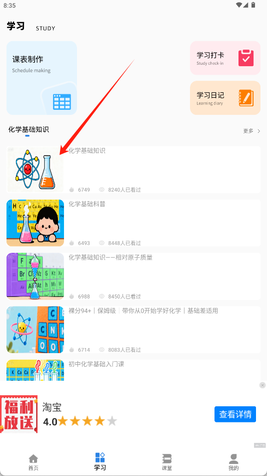 2、在学习页面选择“化学基础知识”模块,点击进入。