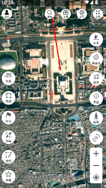 1、进入首页后,可在搜索栏中输入地名、坐标或关键词,系统将快速定位并显示对应区域,支持查看详细位置及周边信息。