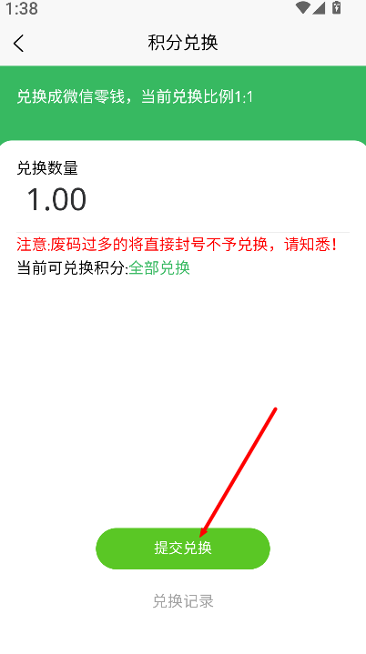 3、选择想要兑换的项目后,确认信息并点击“提交兑换”按钮,即可完成积分兑换操作。
