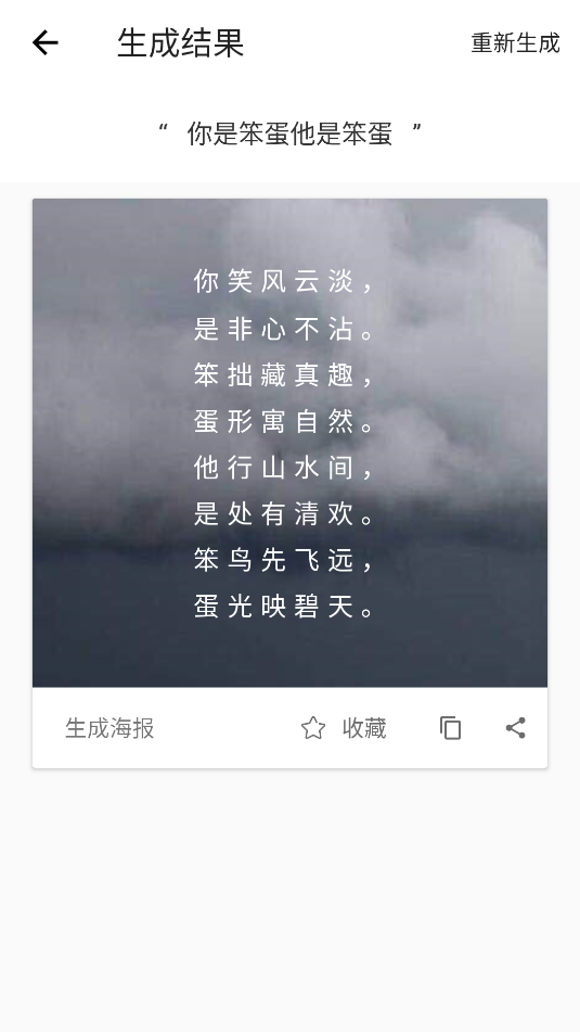 3、如果不满意的,可以点击右上角的重新生成,就可以重新生成新的藏头诗。