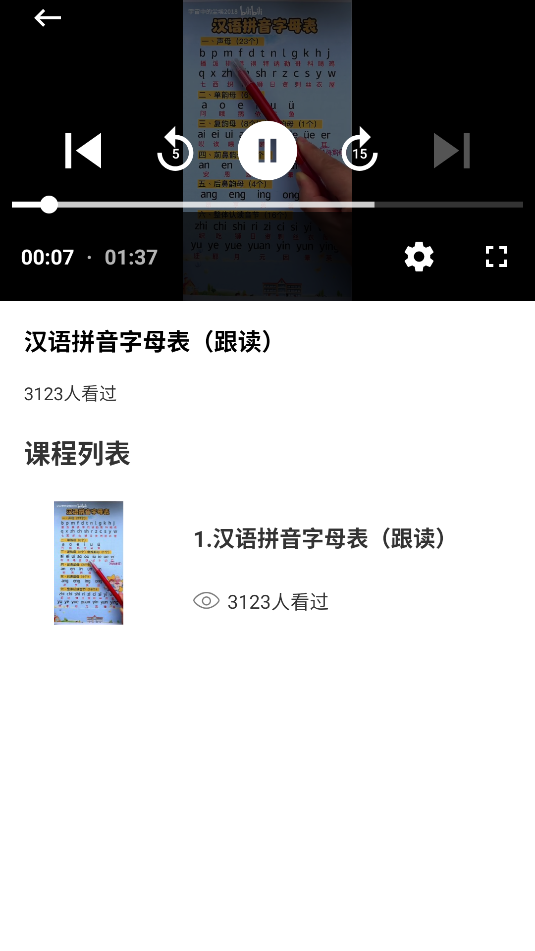 2、拼音字母表,以视频教学为教材,可以跟着视频学习跟读。