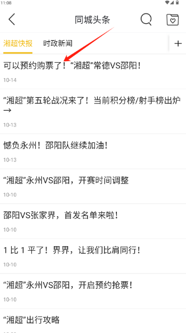 2、进入“同城头条”的新闻详情页后,浏览“可以预约购票了!‘湘超’常德VS邵阳!”。
