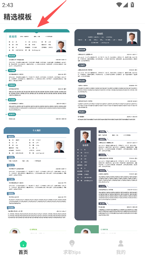 1、模板使用功能,选择精选模板,编辑个人信息、经历等,生成美观简历。