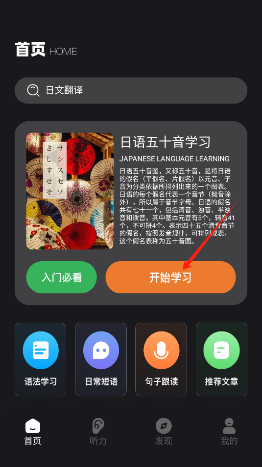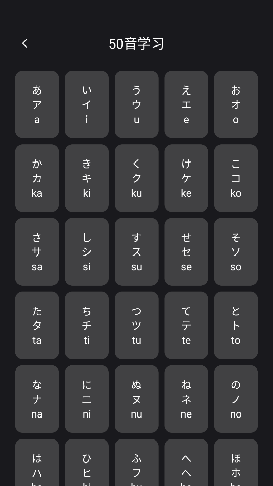 1、打开APP,先点击进入学习五十音,类似于拼音。