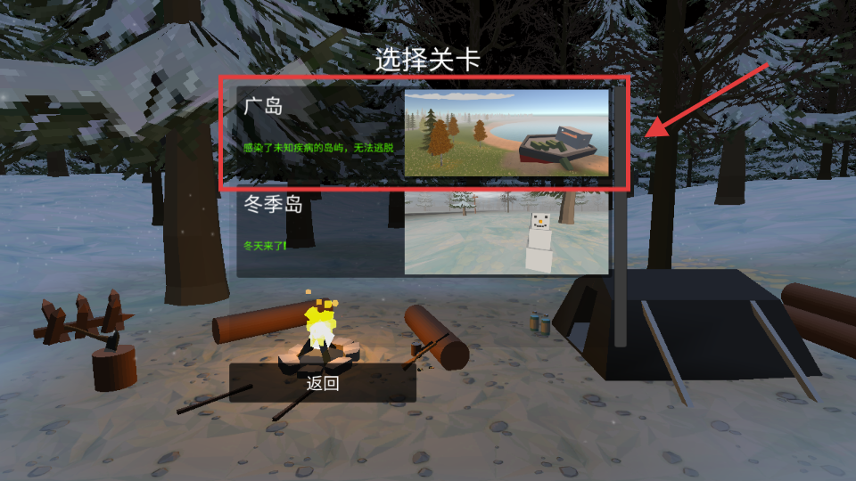 1、选择【广岛】关卡开始游戏,该关卡为感染未知疾病的岛屿,需做好生存准备。