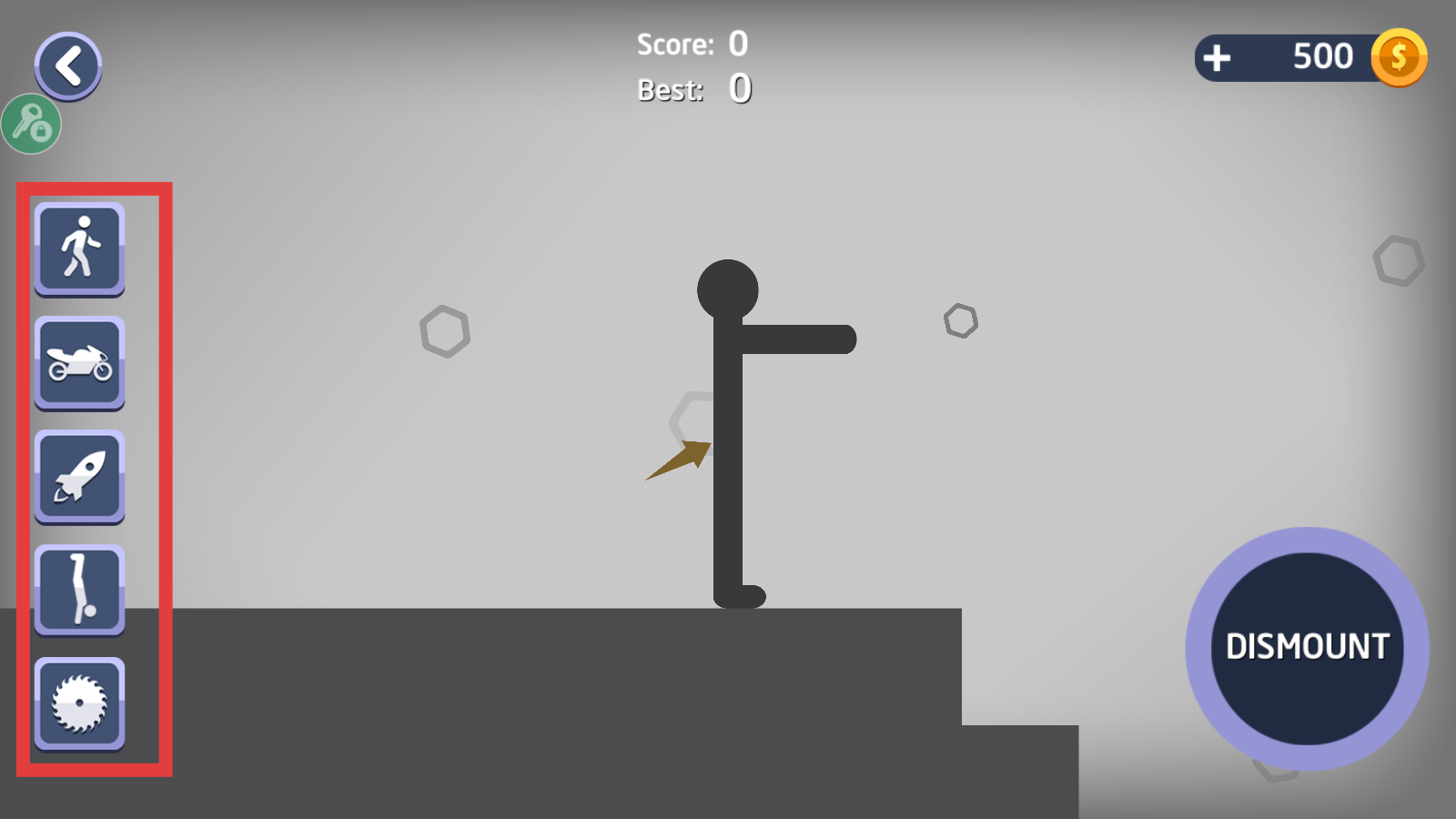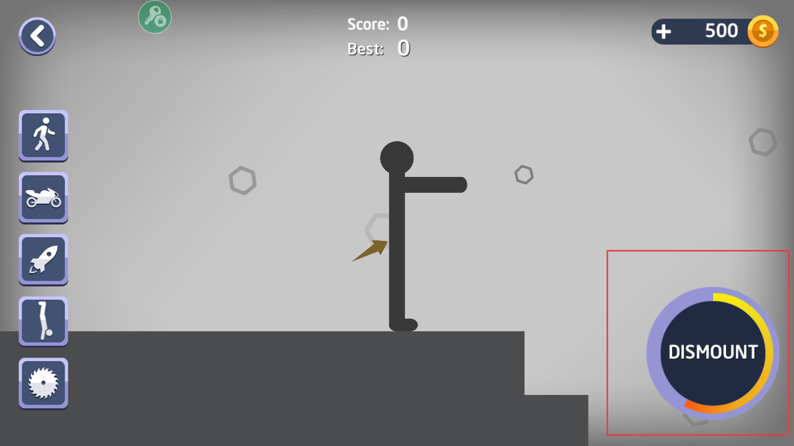 4、点击右侧【DISMOUNT】按钮,触发角色动作,推进游戏并观察得分变化。