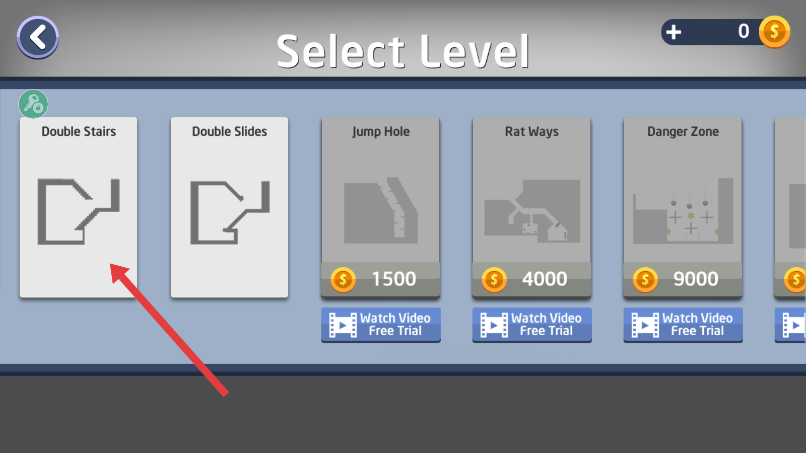 2、选择【DoubleStairs】关卡,进入对应游戏场景,开始该关卡的挑战。