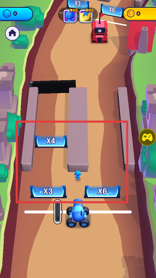 2、在战斗界面中,操控炮弹人穿过【X3】【X4】【X6】等倍数区域,提升角色数量和战力。