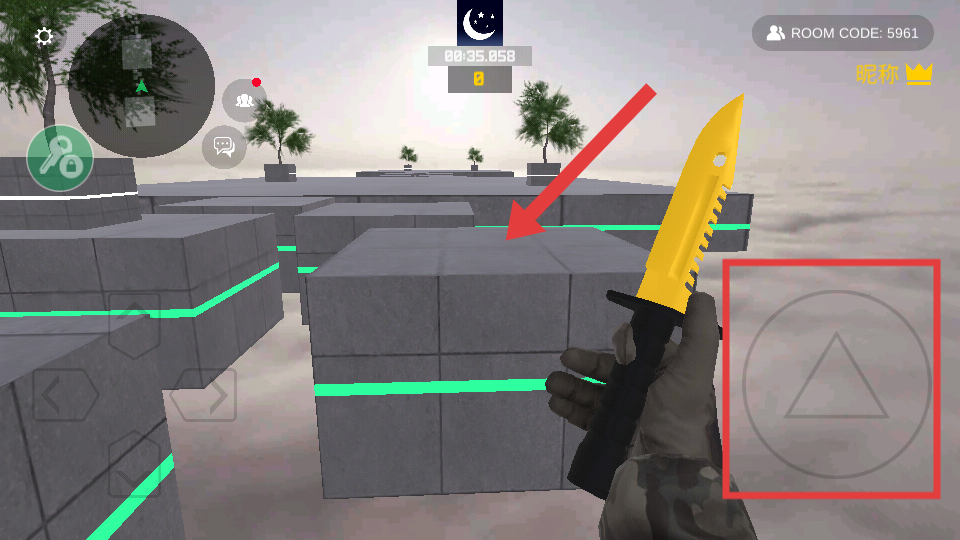 3、朝着箭头指示的平台跳跃,精准落在平台上,继续向更高处推进。