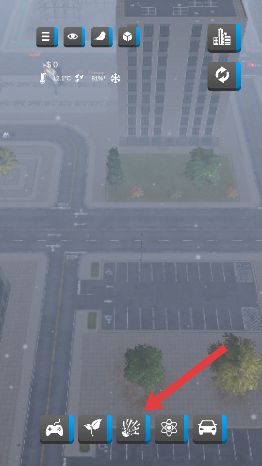 2、在游戏界面中,选择底部的破坏工具,如爆炸类工具,准备对城市建筑进行破坏。