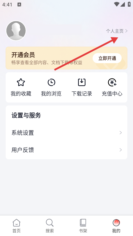 2、在个人中心页面,点击【个人主页】选项,进入个人主页页面。