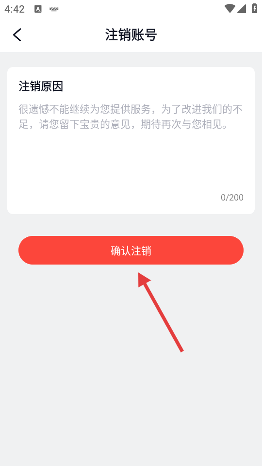 4、在注销账号页面,填写注销原因后,点击【确认注销】按钮,完成账号注销操作。