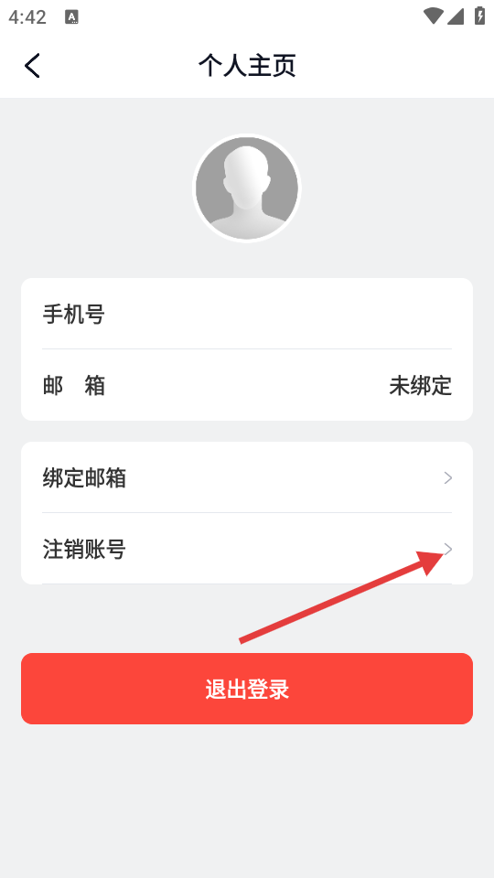 3、在个人主页页面,点击【注销账号】选项,进入注销账号页面。