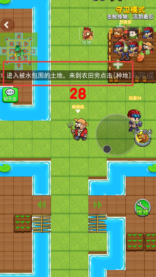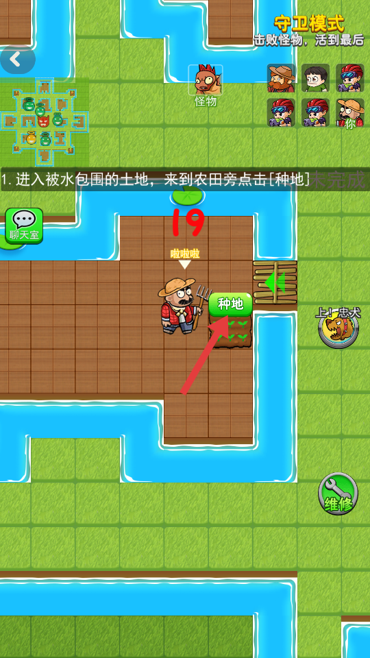 3、点击【种地】按钮,在农田上进行种植,为后续防御怪物做准备。