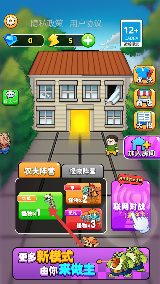 别惹农夫免广告版是一款卡通策略塔防类手游。游戏提供农夫和怪物双阵营选择玩法,玩家可自由选择角色体验不同策略。核心玩法包含建造炮台防御进攻,通过升级设施增强防御能力。模式设计包含三种难度级别适应不同水平玩家,操作简单直观通过点击完成建造升级,画面采用清新卡通风格色彩明亮。任务系统丰富包含防御挑战和资源管理,适合喜欢策略规划和塔防对战的玩家体验多样化乐趣。
