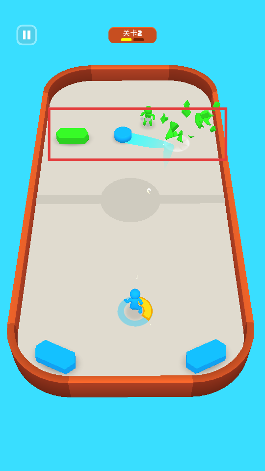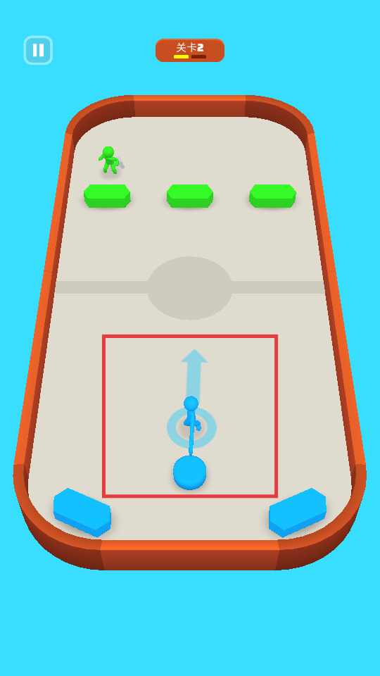 2、在关卡中,拉动蓝色圆盘,调整角度,准备向绿色圆盘发起攻击。