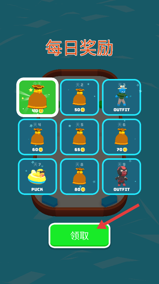 1、点击【领取】按钮,获取每日奖励中的40金币,积累游戏资源。