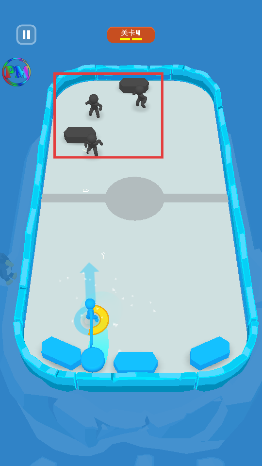 4、应对黑色角色和障碍物,继续调整攻击角度,击败目标,完成关卡挑战。