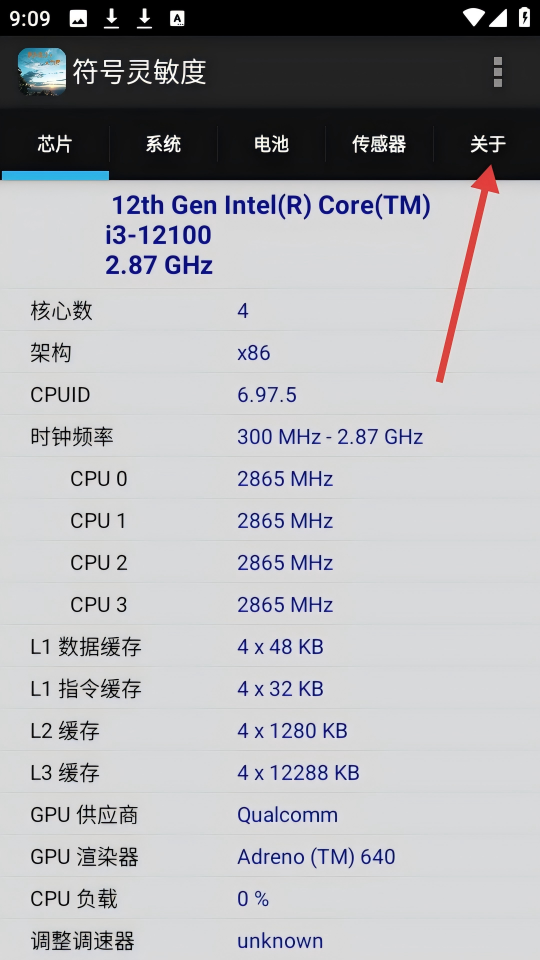 2、点击【关于】标签,可查看芯片、核心数、架构等硬件详细信息。
