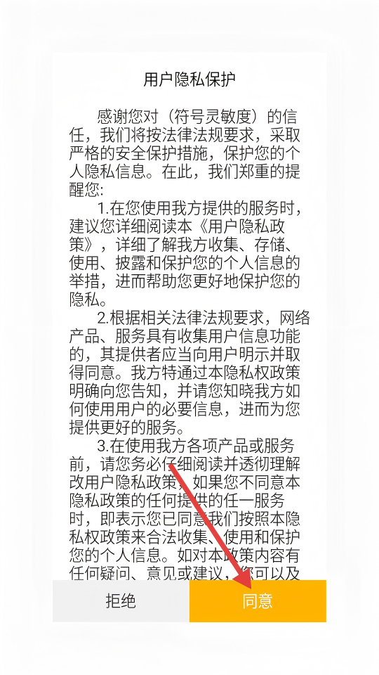 1、使用前需阅读【用户隐私保护】内容,点击【同意】按钮方可继续使用应用。