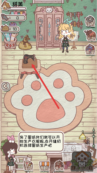 1、进入开心猫舍,找到场景中的缝纫机,点击该缝纫机。