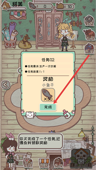 4、完成服装生产后,点击完成按钮领取对应的任务奖励。