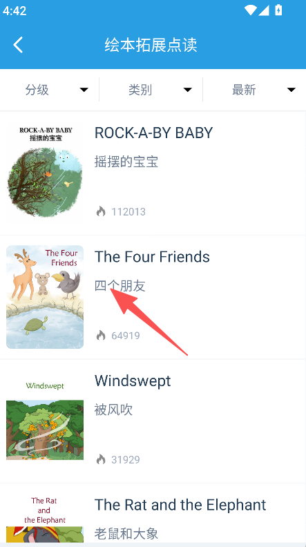 1、打开软件首页,点击绘本拓展点读,选择绘本如《The Four Friends》。