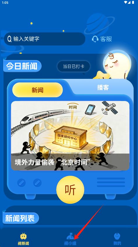 2、在应用首页底部导航栏中点击“阅小组”进入下一步。