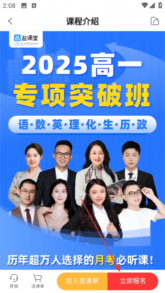 2、在课程介绍页,点击【立即报名】可进入课程选择弹窗。