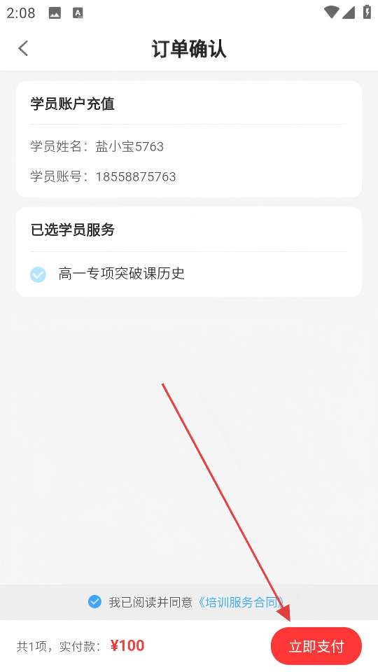 4、在订单确认页,确认信息后,点击【立即支付】可完成课程付款。