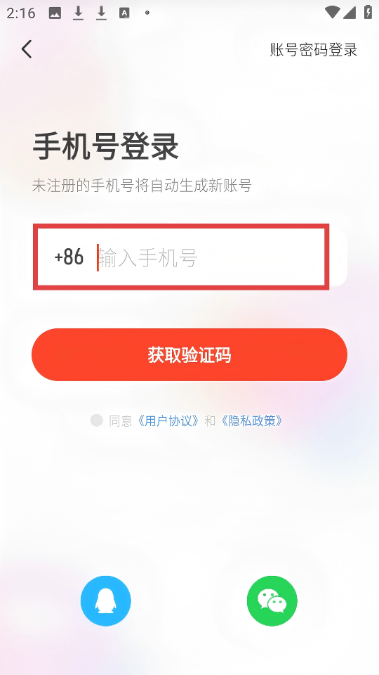3、在【手机号登录】界面输入手机号并获取验证码进行登录。