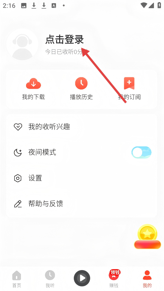 1、在【我的】页面点击【点击登录】进入登录流程。