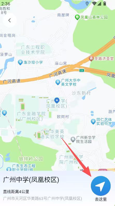 1、选择目的地,点击 “去这里”,获取驾车路线及实时导航。