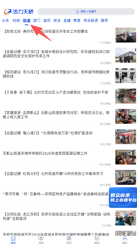 1、资讯浏览功能,可查看街道、部门等板块的本地资讯,了解天桥区各领域动态。
