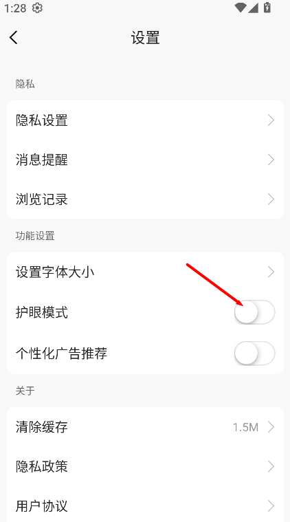 3、在设置界面中找到“护眼模式”功能,将其开启后,屏幕亮度与色温会自动调整,以减少长时间使用带来的视觉疲劳。