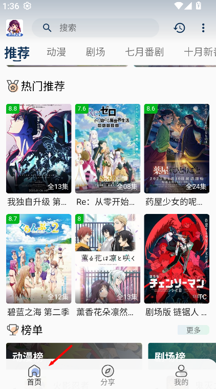 1、打开应用进入首页后,可在界面中查看热门动漫推荐专区,了解当前热播作品及高人气动画内容,快速发现值得观看的优质资源。