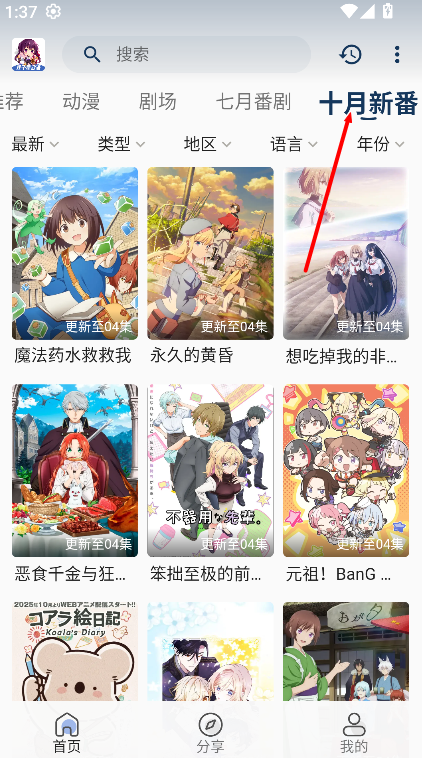 3、在首页下方可看到“十月新番推荐”板块,展示当季最新上线的动画作品,方便及时了解最新番剧动态与播放安排。