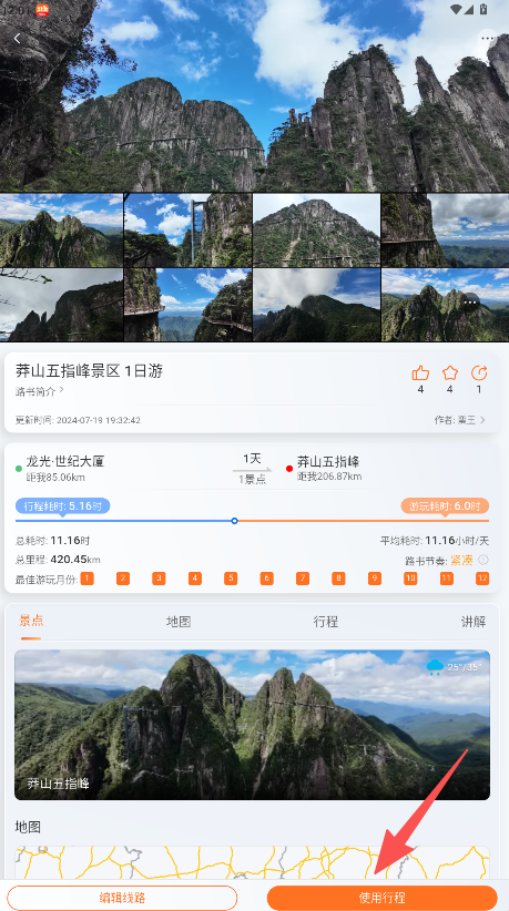 3、行程规划功能,支持行程使用与管理,结合路线、景点信息,助力用户规划旅游行程。